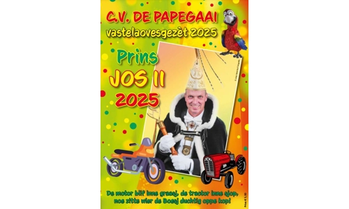 DE vastelaobesgezet van de Papegaai vuur 't jaor 2025, boordevol mit ludieke verhaolkes, foto's en get QR codes. De vastelaovesgezet is sinds dit jaor gehieël full color gedrukt.